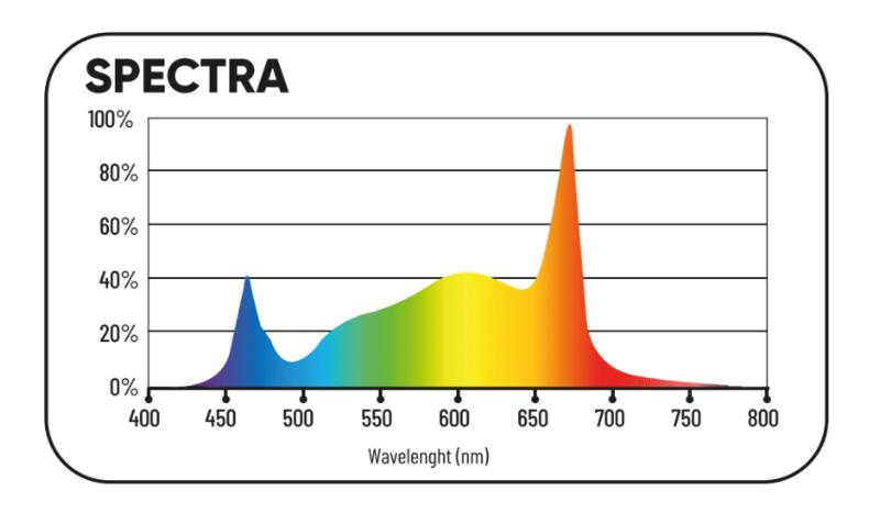 Met een indrukwekkende lichtopbrengst van 1.540 µmol/s en een efficiëntie van 2,8 µmol/J, behoort deze LED-lamp tot de absolute top in zijn klasse. Het volledig spectrum – een combinatie van wit licht en dieprood – ondersteunt een gezonde en krachtige plantengroei van begin tot eind. Dankzij de passieve koeling werkt de lamp stil en onderhoudsarm, wat een groot voordeel is voor binnenkwekers.