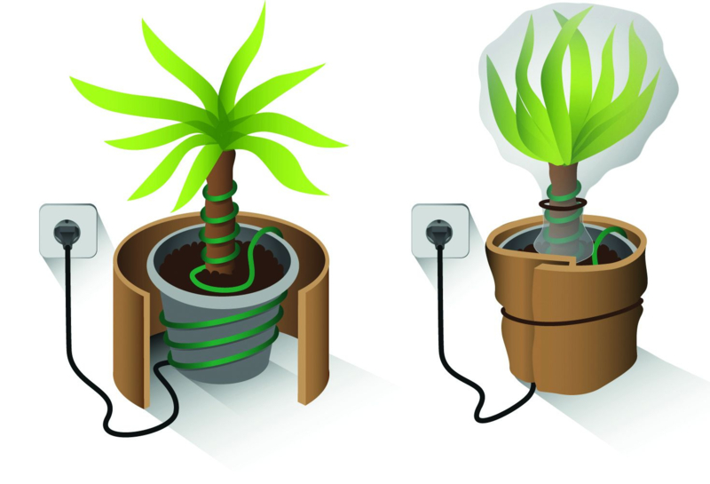 Schakel de plantenverwarming alleen in bij vorsttemperaturen. Op zonnige winterdagen kan de temperatuur in een ingepakte plant snel oplopen. Controle van de temperatuur blijft daarom belangrijk. Een thermometer met voeler bij de plant is aan te raden om de situatie goed te volgen.