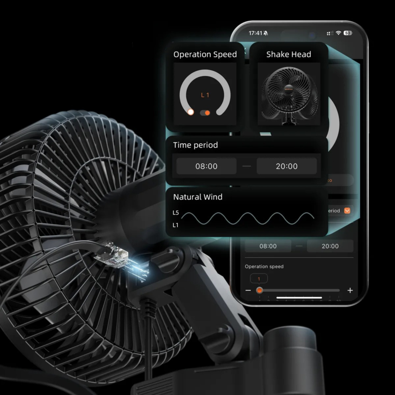 Met een luchtverplaatsing van 300 tot 315 CFM levert deze clip fan veel luchtbeweging voor zijn formaat. De ventilatorsnelheid loopt op tot 2100 RPM, terwijl het stroomverbruik slechts 8 watt bedraagt. Dat maakt deze set geschikt voor langdurig gebruik tijdens de groeifase, bloeifase of algemene klimaatregeling.