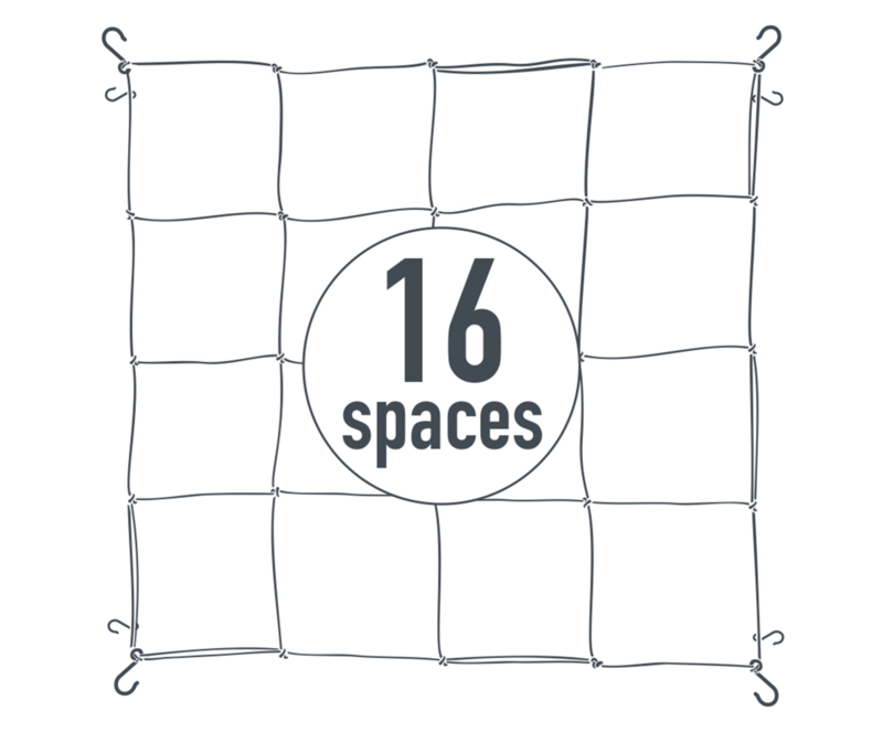 Elastisch net van Garden HighPRO die je in verschillende maten ruimtes kan gebruiken! vanaf 60 x 60 cm / 9 vakken tot en met 120 x 120 cm / 36 vakken!