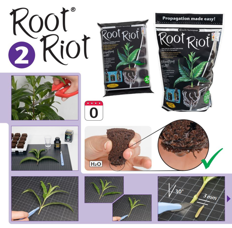 Daarnaast zijn Root Riot pluggen een perfecte basis. Deze zijn verkrijgbaar als tray met 24 pluggen of als tray met 77 pluggen en zorgen voor een ideale lucht- en vochtbalans.