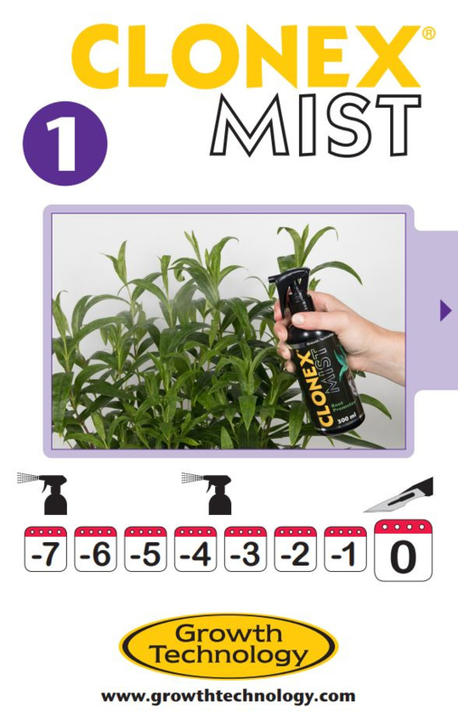 - Besproei de stekken direct met Clonex Mist