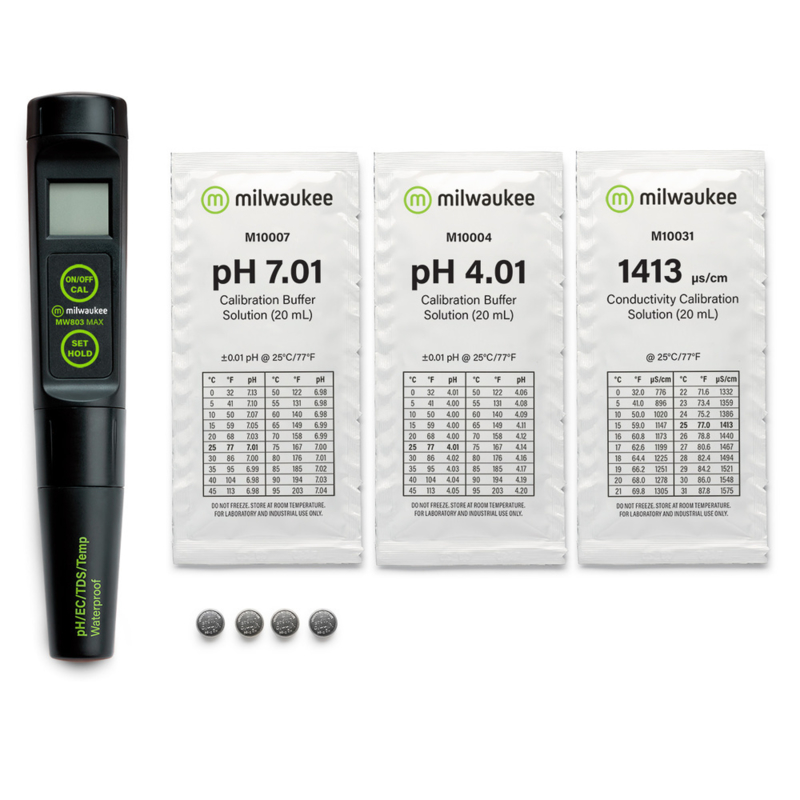 De Milwaukee MW803 MAX Waterproof Low Range 4-in-1 pH / EC / TDS / Temp Tester is ontworpen als een alles-in-één oplossing voor telers.
